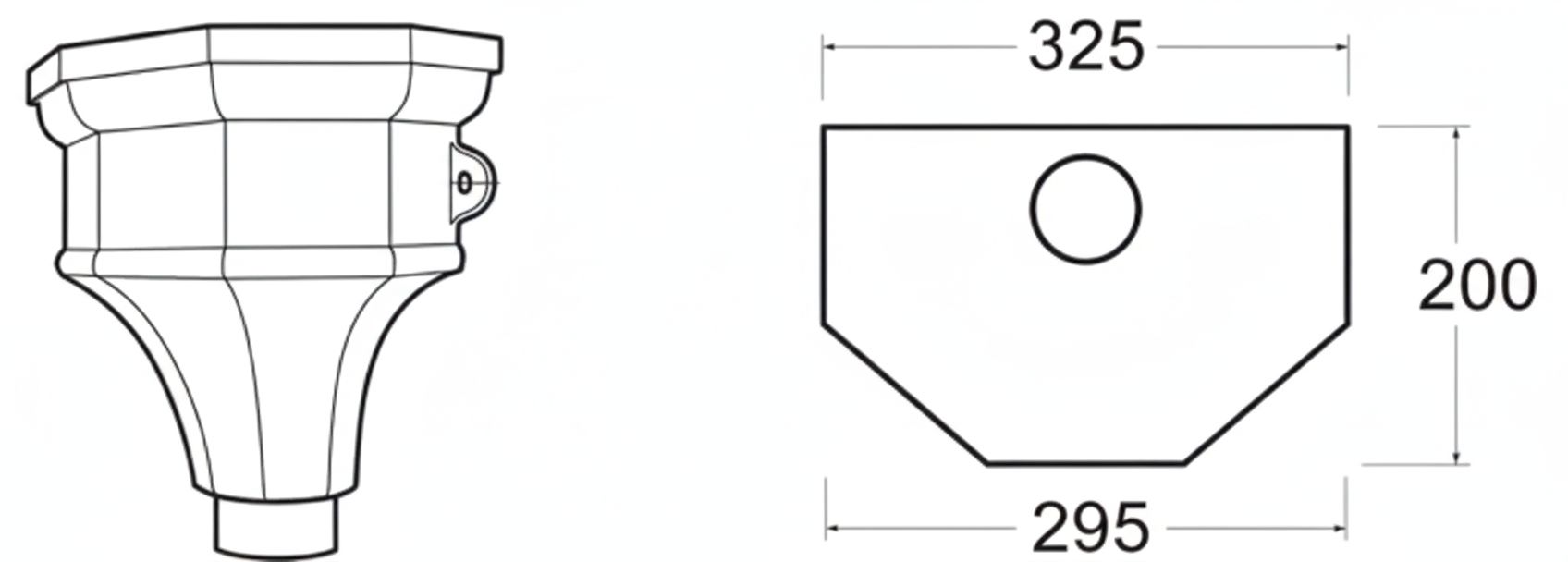 325mm wide x 200mm deep x 290mm high (inc. Fixing Holes)